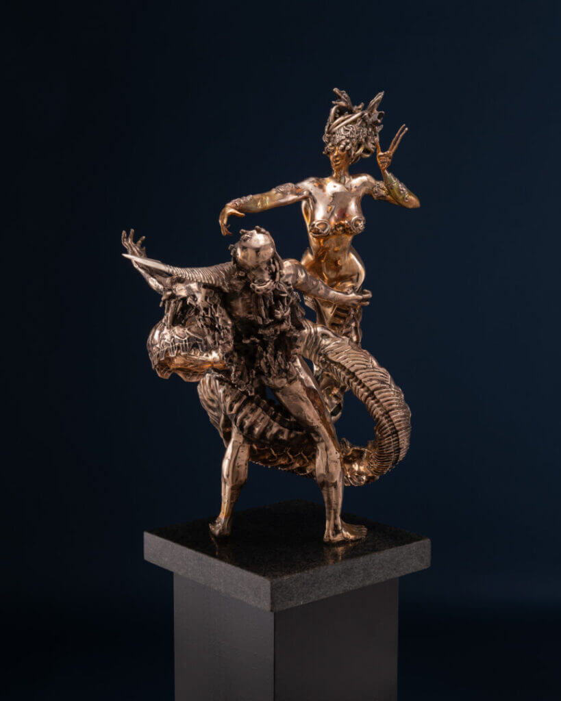 Jakub Trajter’s innovative works redefine modern sculpture. His sculptures, primarily in metal, are expressive installations that command attention. Titled “Juxtapose, “this series of bronze sculptures by Jakub Trajter embodies the profound concept where chaos and order coexist within the realms of