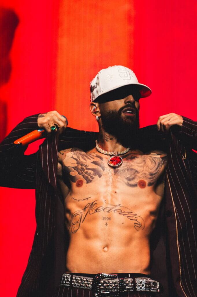 Maluma has redefined what it means to be a global superstar, seamlessly blending music, fashion, and personal branding in a way that sets him apart from his peers. His recent collaboration with Dolce & Gabbana for his March 2025 performance at the Accor Arena in Paris exemplifies his ability to elevate his image through luxury menswear. Wearing a Sicilia-fit wool double-breasted pinstripe suit from the FW25 collection, styled by @stephanieescobar_, Maluma didn’t just wear the brand—he embodied it. His impeccable style, paired with his undeniable charisma, speaks to both men and women, cementing his place as a cultural icon whose appeal transcends the boundaries of music and fashion alike.