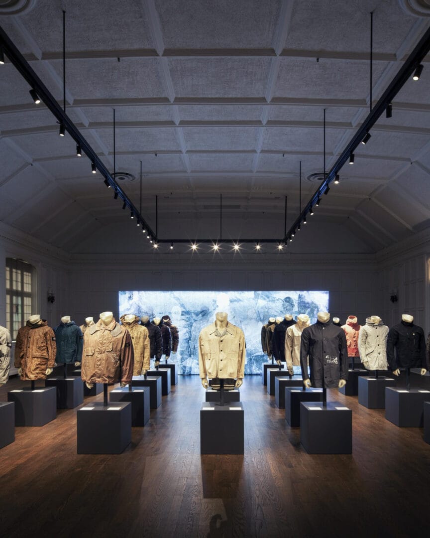Material innovation has always been a cornerstone of human progress, from early leather garments to today’s high-tech fabrics. Stone Island embodies the spirit of continuous exploration, and their archival exhibition at Holt Renfrew Ogilvy is a tribute to four decades of cutting-edge research and design.