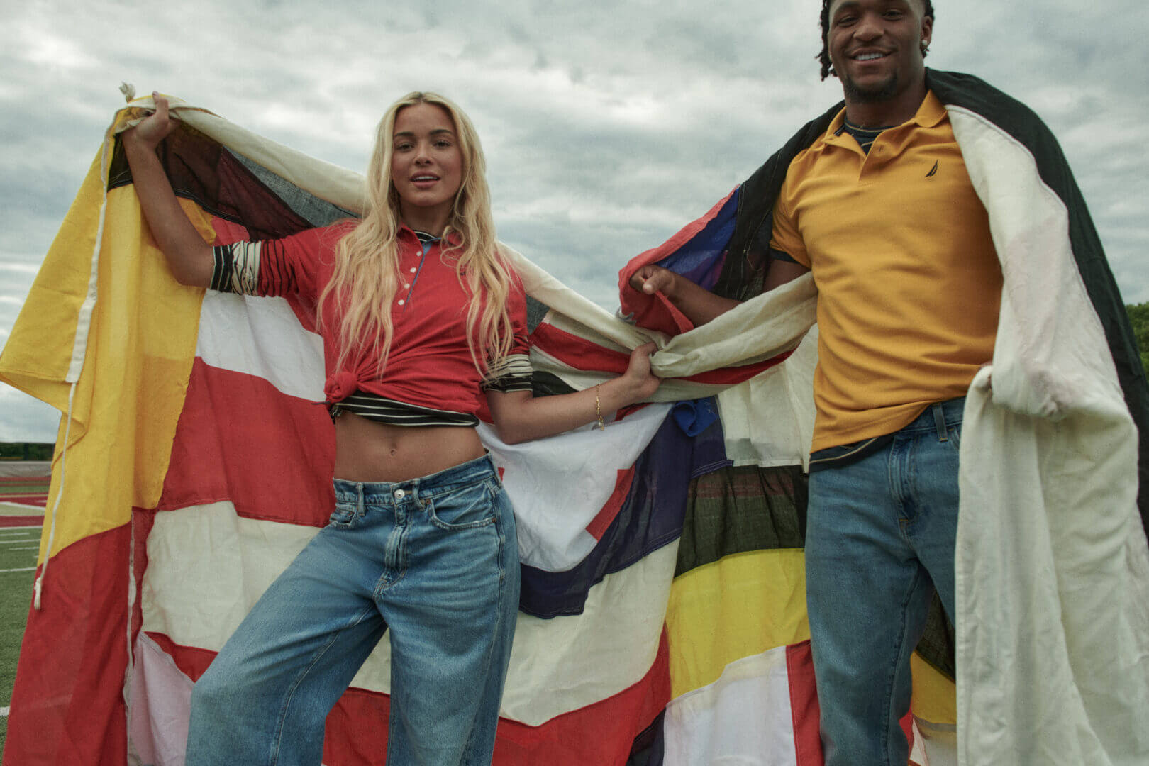 Captured against the dynamic backdrop of a school football field and locker room, Livvy and Luther bring to life Nautica’s latest campus-approved styles. The collection features a range of polos, sweaters, shirts, jackets, and more, all embodying Nautica’s commitment to quality, functionality, and timeless design. These pieces ensure that students not only look stylish but feel comfortable as they navigate the demands of campus life.