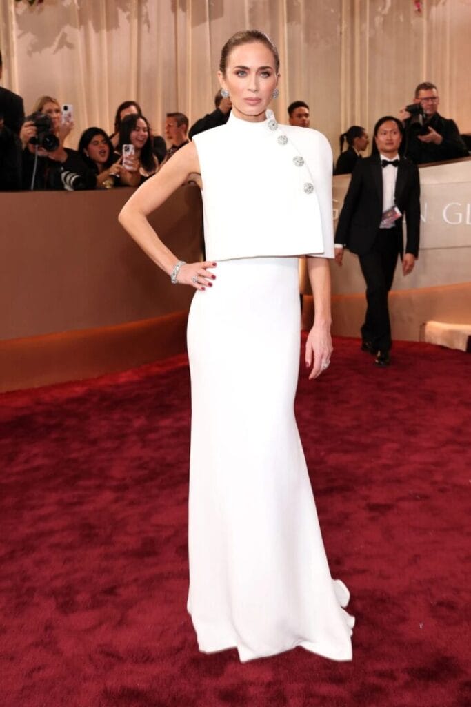 Emily Blunt opted for refined simplicity in Louis Vuitton, proving once again that restraint can be incredibly impactful. The clean silhouette and impeccable tailoring allowed the design to speak for itself. Styling remained classic and unfussy, which elevated the overall effect. It was timeless Oscars dressing executed with quiet confidence.