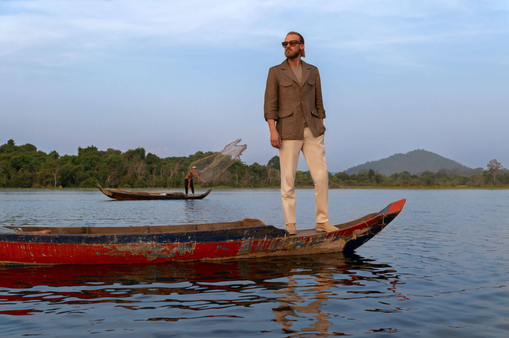 Inspired by the spirit of exploration, the collection features natural tones of the earth, greens of the forest, greys of Angkor temples, and blues of the Cambodian sky. The garments, made of natural fibers like cotton and cotton-linen blends, adapt to extreme weather conditions. The commitment to sustainability includes planting 5,000 trees and educational programs to ensure future generations take pride in their heritage. Cambodia, chosen for its beauty and deeper soul exploration, embodies the motto: “Explore the world to explore ourselves.”