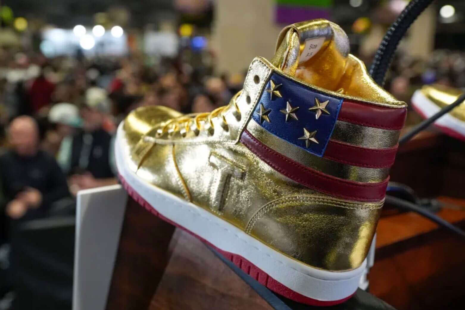 The shiny gold high-top sneakers, with an American flag detail on the back, are being sold as “Never Surrender High-Tops” for $399 on a new website. And, according to an article published on February 17, 2024, in the Washington Examiner, the sneakers have completely sold out.