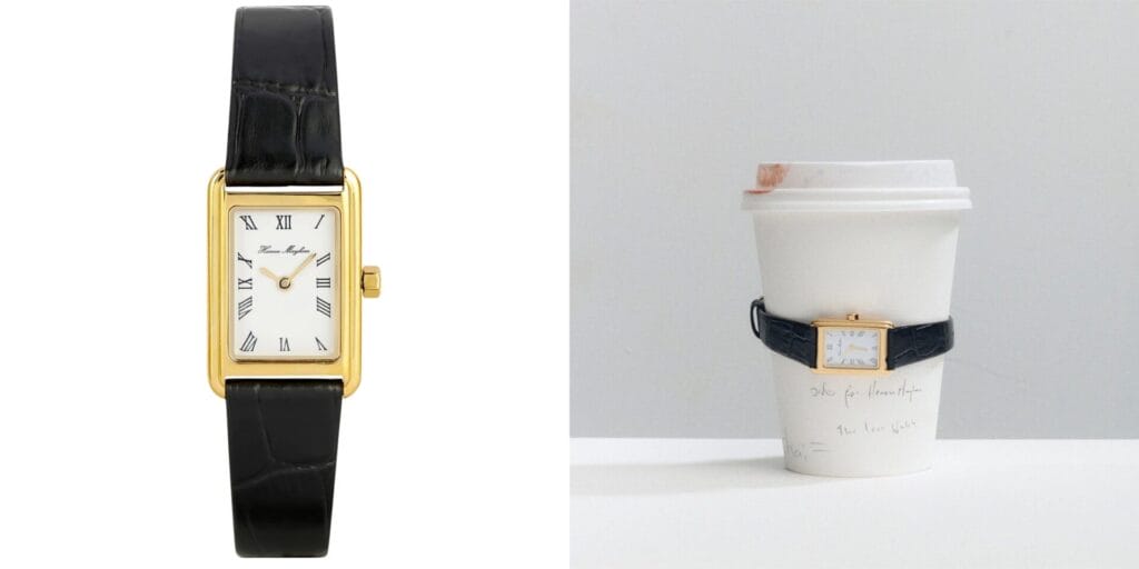 The Icon Watch from Heaven Mayhem is proof that simplicity can be the ultimate luxury. With its rectangular gold-tone, crisp Roman numerals, and black croc embossed strap, it brings a touch of vintage polish to any look. It’s reminiscent of classic Cartier shapes, but with a fresh, fashion forward attitude that’s entirely its own. Designed for those who love the feel of an heirloom without the pretense, it’s refined and effortless, a versatile piece that works for every occasion, and a gift that will never feel overdone.