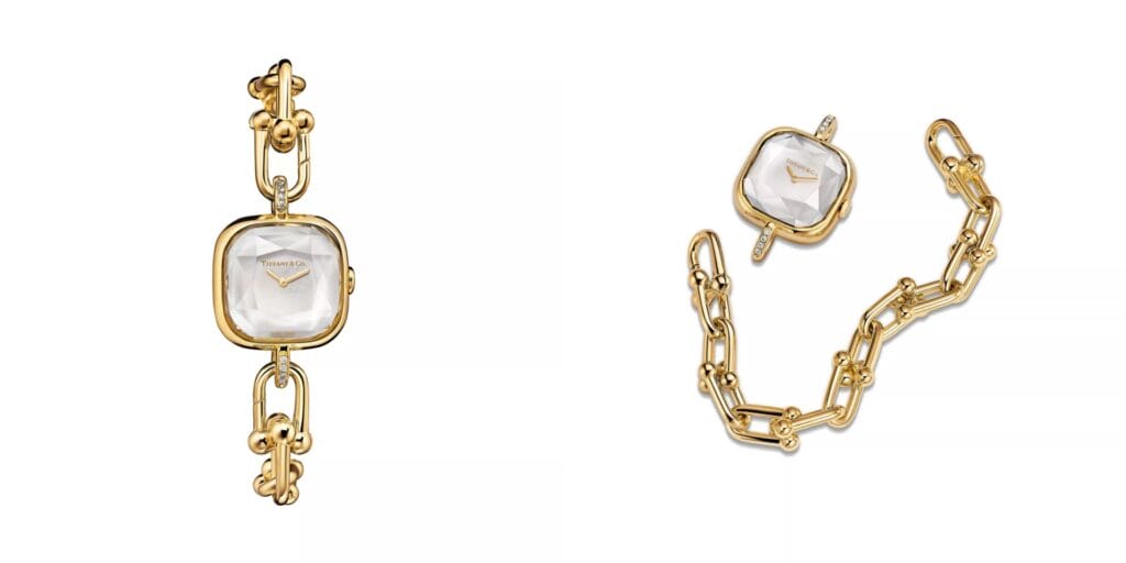 Tiffany’s signature HardWear links take on new form in this architectural gold timepiece.