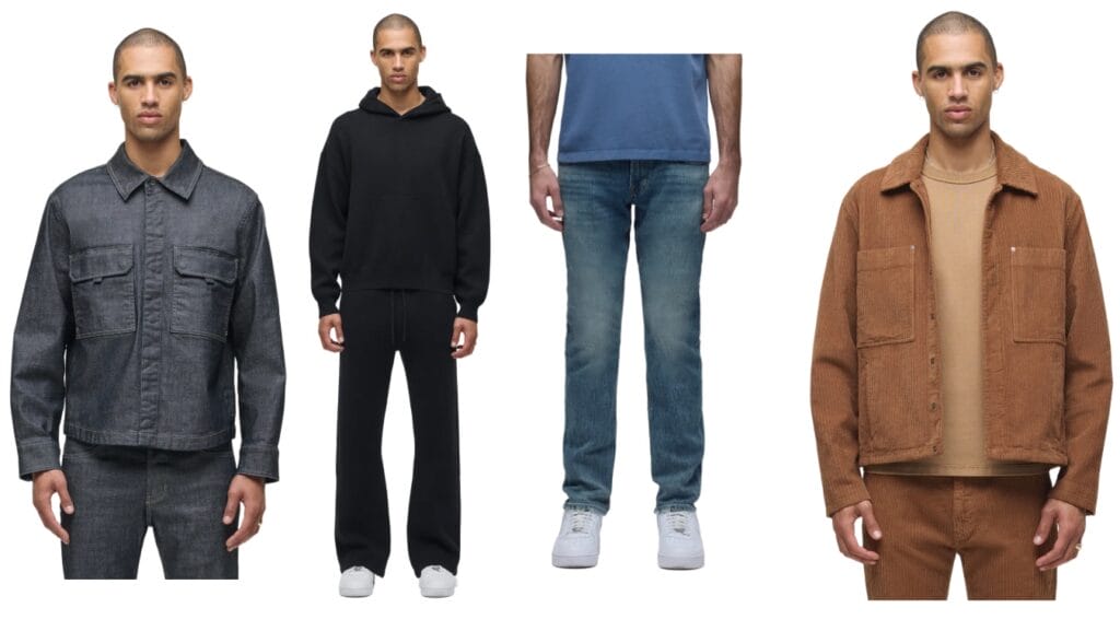 The Brixton Straight ($168) //Satine Coach Jacket ($318) // Classic Crewneck ($248) // The Asher Slim ($168)