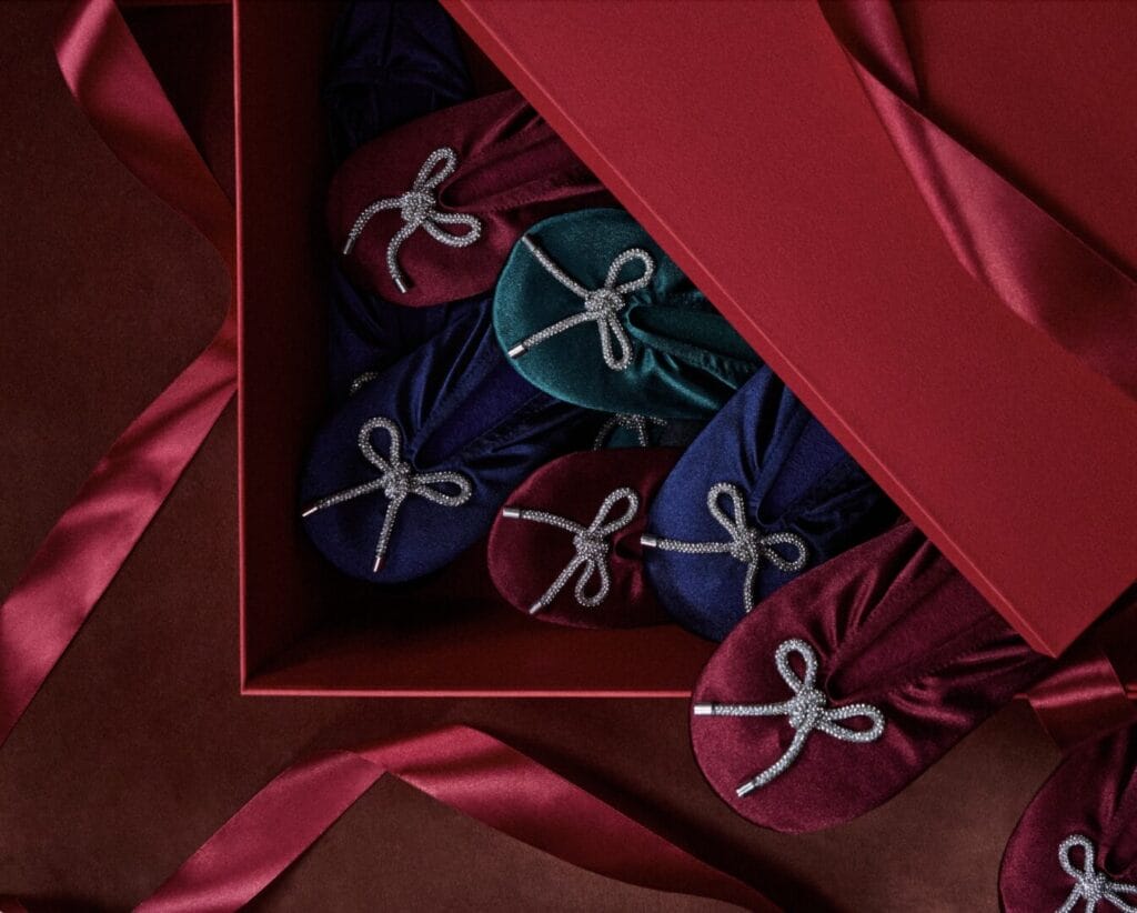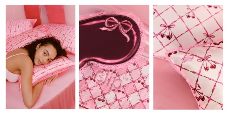 The Slip Contour Sleep Mask ($75) offers complete darkness and lash-friendly comfort in elegant shades of Pink, Black, and limited-edition Crimson. The Slip Queen Zippered Pillowcase ($115) enhances beauty rest with its smooth silk finish, reducing hair frizz and helping maintain skin hydration. For the perfect holiday set, the Peppermint Beauty Sleepover Set ($82) includes an Evergreen lace-trimmed mask, a large White scrunchie, and a Black skinny scrunchie—an irresistible trio that redefines the meaning of beauty sleep.
