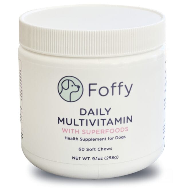 Foffy Superfood Multivitamin is a daily supplement that supports a dog’s whole body wellness (and happiness) in just one easy daily soft chew. The chews are formulated with clinically proven ingredients like collagen and ahiflower oil as well as superfoods and antioxidants like blueberries and turmeric. Dog food alone may not provide the nutrients that your dog needs; supplementing with Foffy fills their nutritional gaps. Plus! Dogs love them and think it’s a delicious treat.