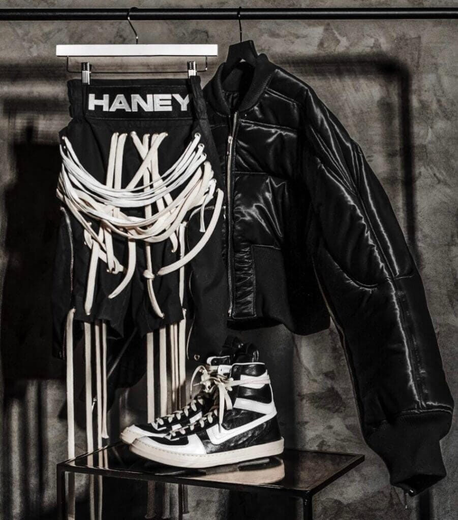 The entirely handcrafted and customized ensemble was inspired by Rick Owens. This creative collaboration includes the Rick Owens Girdered Cropped Bomber, SS20 Thomas Lace Shorts, as well as a sneaker – all authentic RO pieces repurposed to create a unique 1-of-1 fit for Haney. The boxing boots include a handcrafted outsole leather wrap, making them functional and practical for being in the ring. The jacket features premium white python in Haney’s initials at the back, with an intricate cross-over lacing design for his boxing shorts and embroidered logos. Designed with the finest materials and with meticulous detail, The SURGEON has further solidified itself as the go-to for skillfully crafted one-of-a-kind pieces.