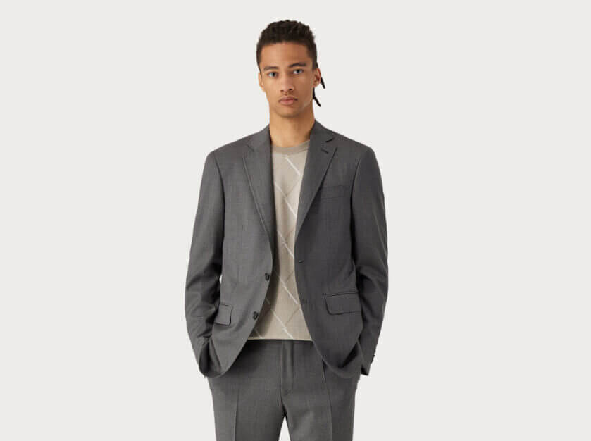 Canali suits are famous for their tailored fits and top-quality fabrics. The beige suit features a delicate micro pattern that adds texture to a sleek look. The clean lines of the modern fit emphasize the body and follow its every movement, arming the wearer with a comfortable yet dapper way to put their best foot forward.  $2,150
