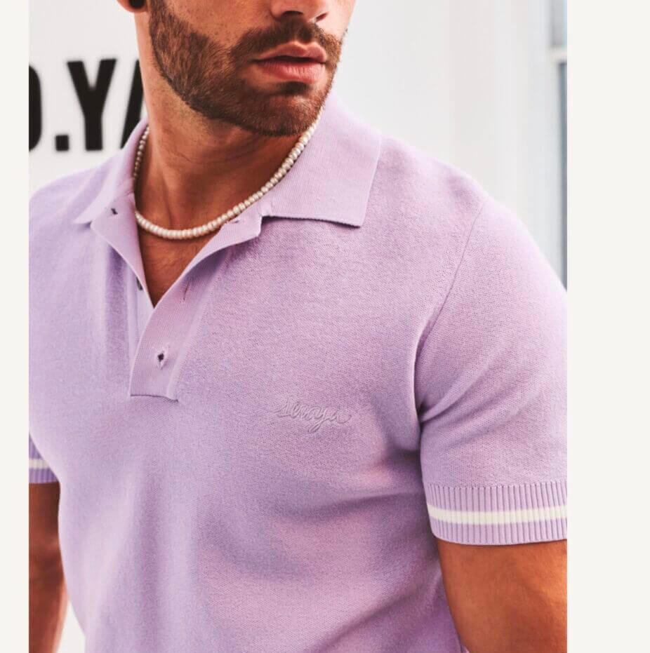 Axel Fitted Polo, Lavender, A staple in every wardrobe, the sophisticated polo is stylish and sporty—easily dressed up or down, depending on the mood. Enlivened by its lavender colorway, the slim knit top is the versatile silhouette you need this spring. $245