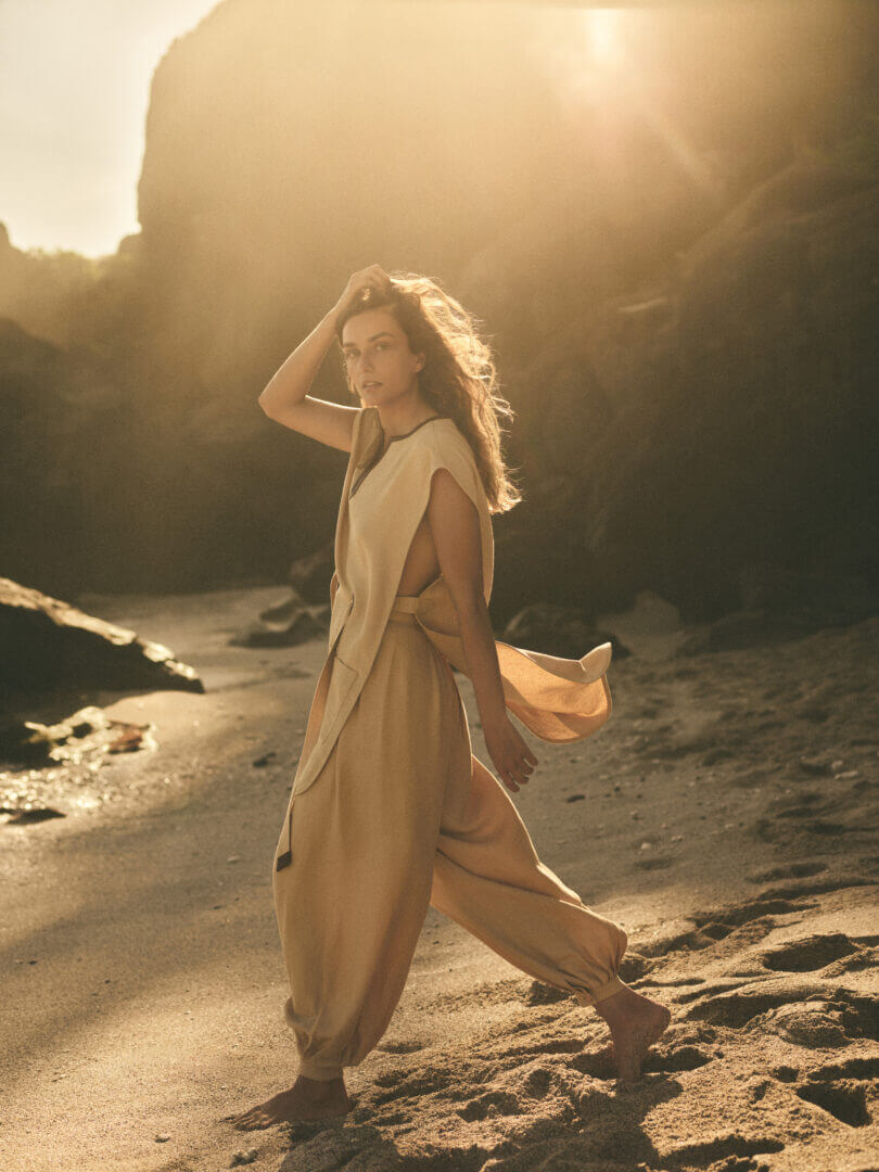 True to Loro Piana’s legacy, the collection redefines resort wear with its masterful use of silk, cotton, and linen—the quintessential summer fiber. The interplay of breezy shapes and luxurious textures elevates leisurewear to a realm of quiet indulgence. This season’s designs effortlessly glide over the body, offering a balance between relaxed ease and polished refinement. The Annet top and Peter trousers in pale blue Cardo Veneziano silk mirror the beauty of Venetian landscapes, while the Antigua-crafted linen lends distinctive charm to the Augustin wide-legged trousers and Carolina dress. The Maison’s ability to translate natural beauty into fabric is nothing short of poetic.