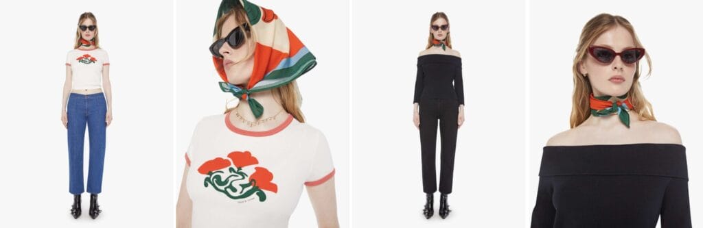 At first glance, the collection feels quintessentially MOTHER: high-quality denim, relaxed tailoring, and that California ease the brand has built its name on. But Fineman’s touch is immediately clear. Playful graphics, bold washes, and tongue-in-cheek details set the pieces apart. A classic jean suddenly feels fresher when paired with a top that has a touch of irony. Even the silhouettes, ranging from wide leg jeans to fitted staples, carry a sense of confidence, as if they’re designed for someone who knows how to command a room without saying a word.