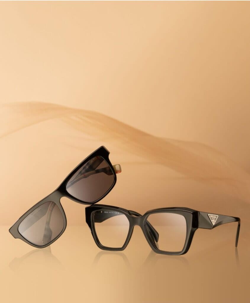 Prada Eyeglasses – This is the Prada PR 09ZV, which is a geometric cat-eye frame, and part of our 40% off designer frames sale