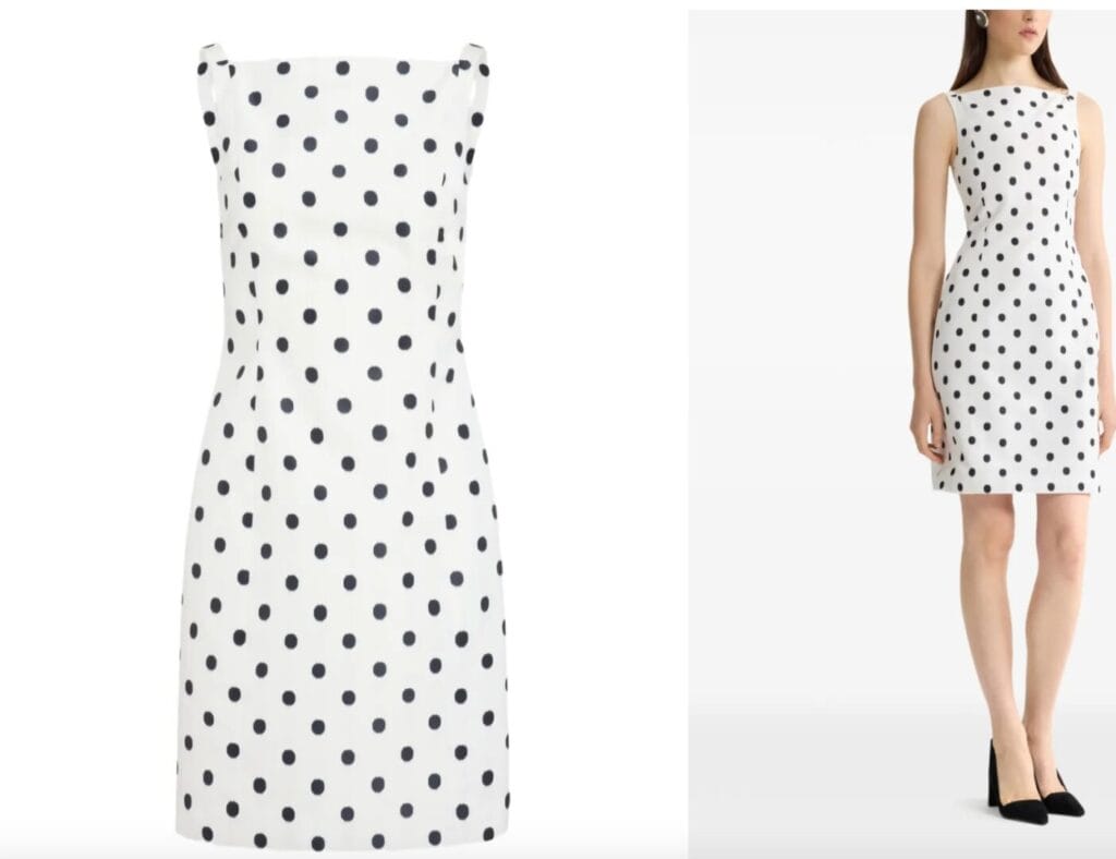 A structured Parisian polka-dot mini dress inspired by ‘90s silhouettes, blending timeless