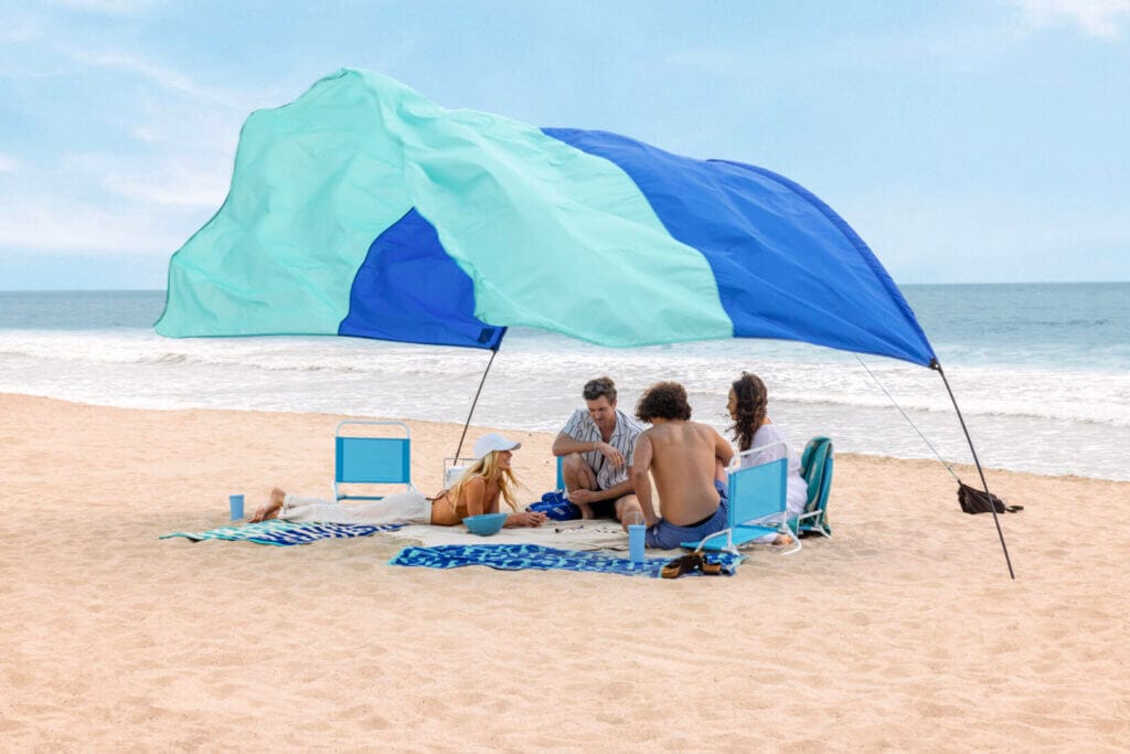 The Shibumi Shade® is Wind Powered® and crafted to float effortlessly on the ocean breeze. Because it Works With The Wind, Not Against It®, it won’t break or blow away. Easily portable, lightweight and a breeze to set up, the Shibumi Shade makes beach time better.
