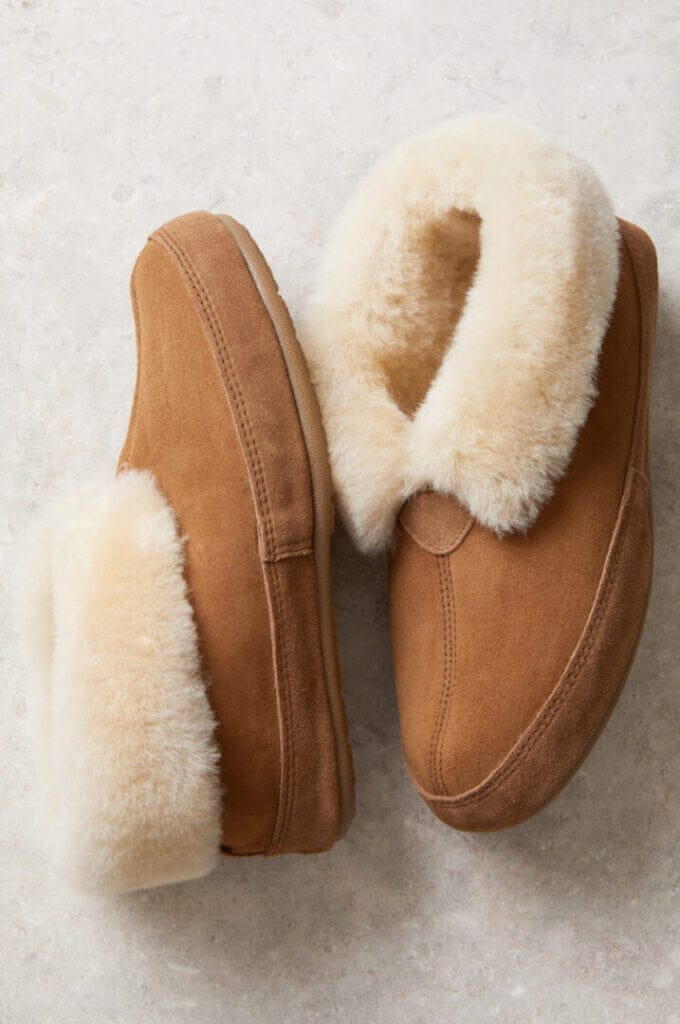 Product name with hyperlink: Women’s Emma Sheepskin Slippers, $119