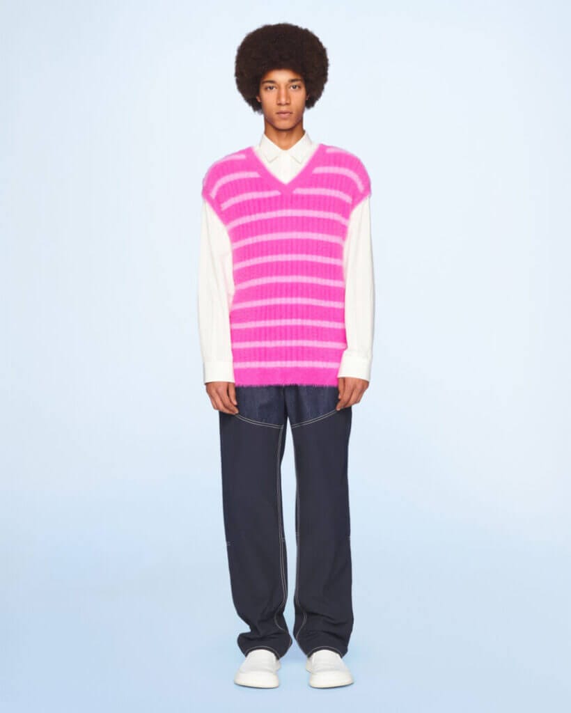 JACQUEMUS – Fluffy striped pullover vest. $190