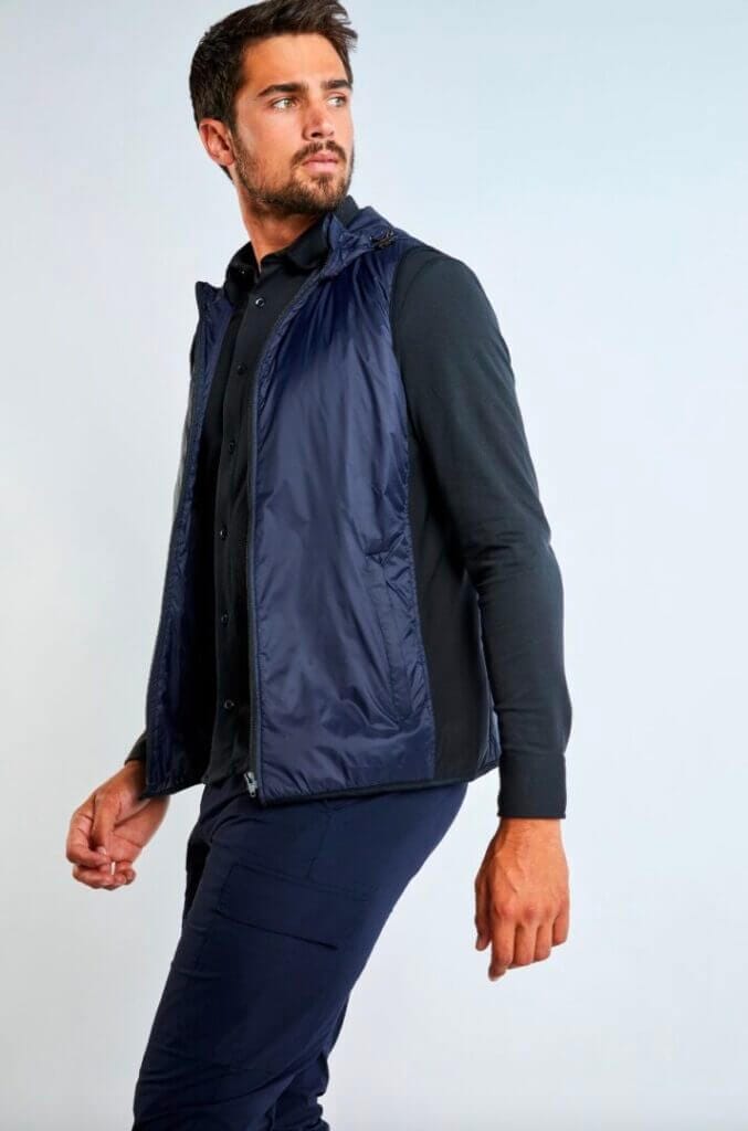 Anatomie – Fusing elevated performance wear, this stylish men’s vest features a classic relaxed fit design with a slightly extended length for an elevated feel. A high collared neckline is accented by a comfortable hood that’s ideal for slipping on with any type of weather. A sturdy zip-front closure completes the look for a true wear-anywhere aesthetic. Crafted using Anatomie’s signature wrinkle-free and weather resistant fabrics with super stretch side panels, this bold men’s vest is the perfect companion for any upcoming adventure, whether local or abroad. $178.