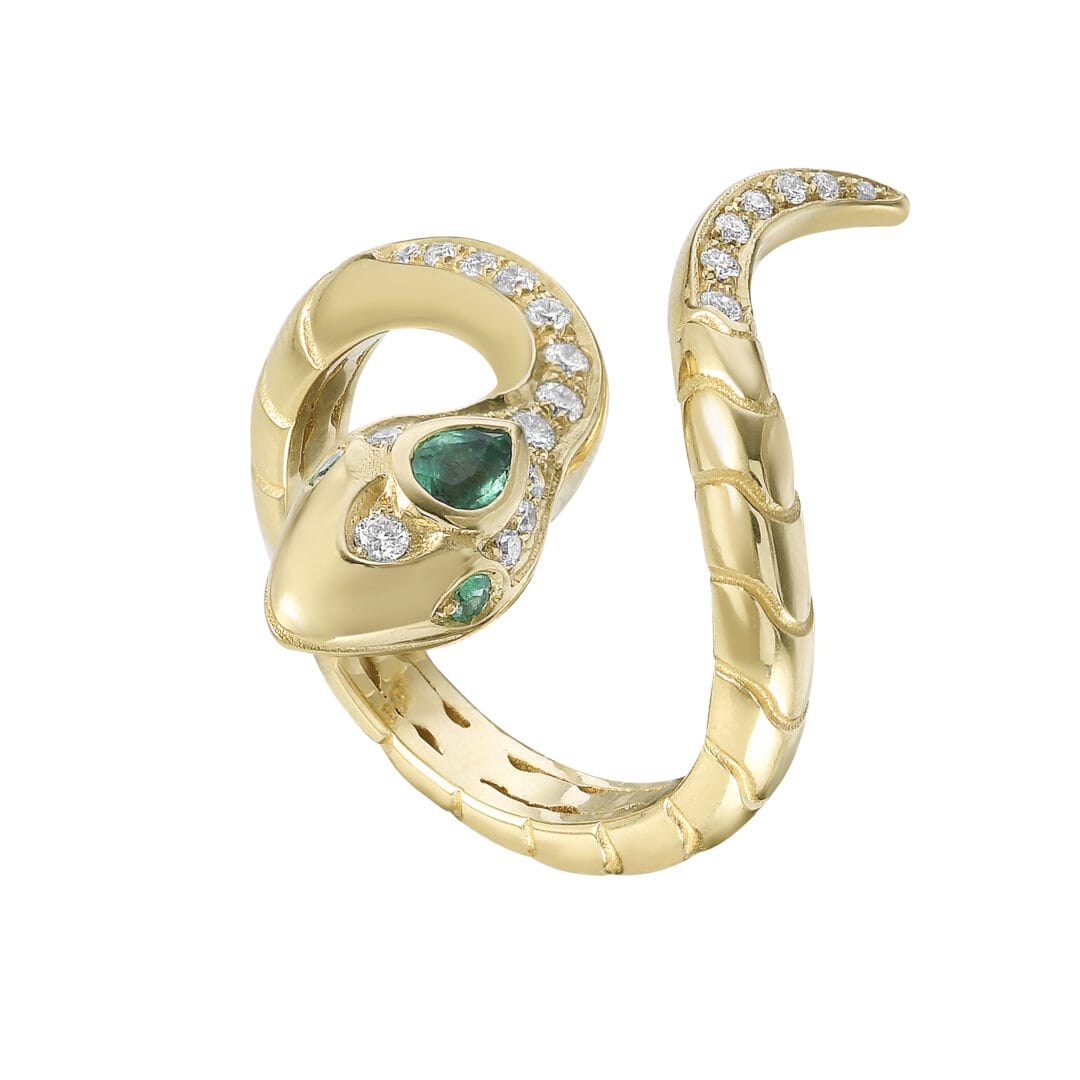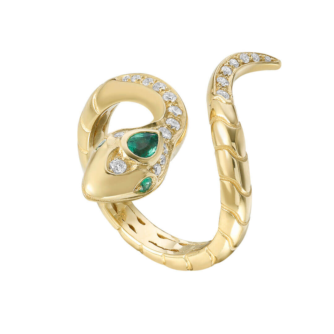 This bold and luxurious design features a snake wrapped around the finger, with a