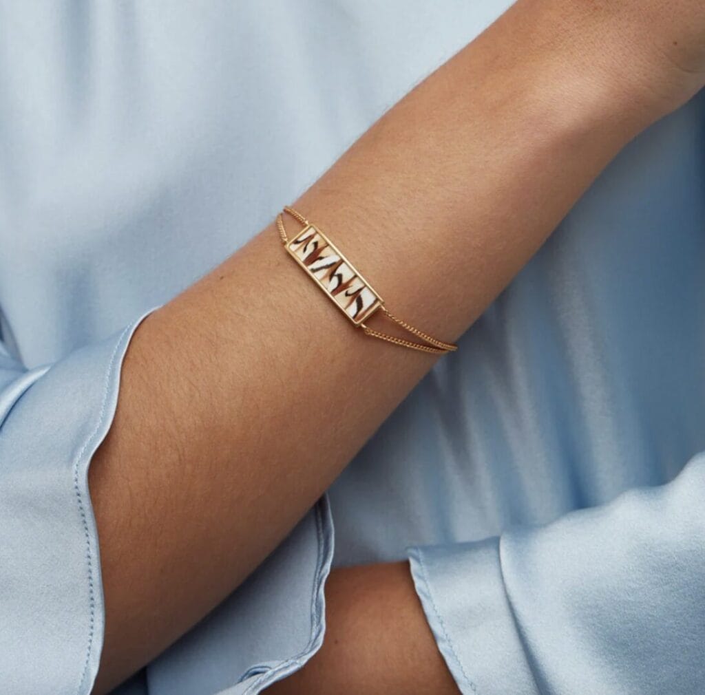 22k Gold plated brass with signature “Endless” pendant and palm wreath motif mini accent charms. $280.00. Courtesy of ETERNAL BLUE.